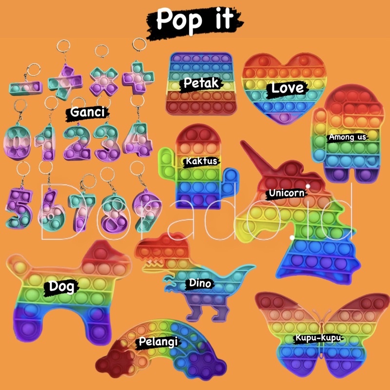 Popit mainan Pop It Murah Fidget Pop Its Square Rainbow Multicolor Foxmind Penghilang Stress anak